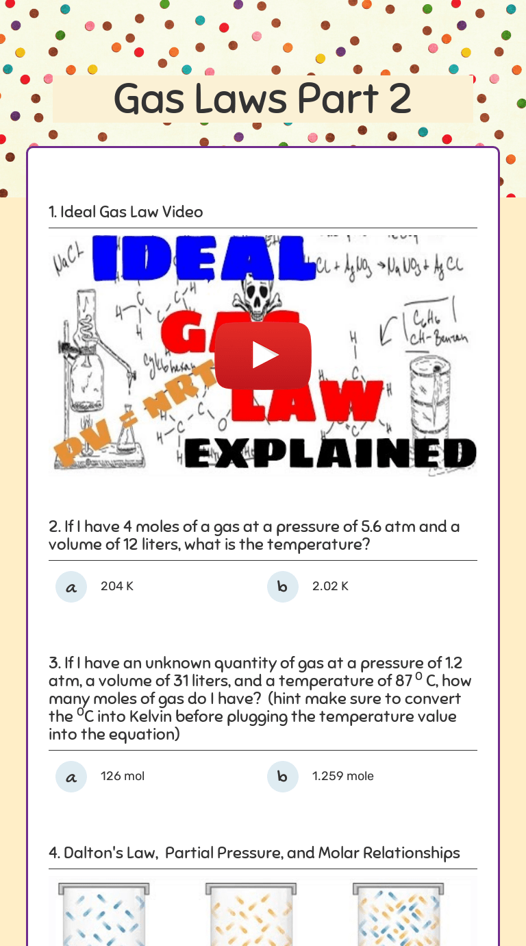 Dalton's law of partial pressures worksheet 1) if i place 3 moles of n2 and 4 moles of o2 in a 35 l container at a temperature of 250 . Dalton 's law of partial pressures worksheet. P = p + p +p3 +. The law of interaction is the name given to sir isaac newton's third law of motion, which holds that an "interaction" between two objects brings creates an equal and opposite reaction. The most common procedures in the country for handling i. Dalton 's law of partial pressures worksheet. If the partial pressures of the three gases in the tank are 35 . What is the pressure, in kpa, of the dry oxygen gas? Financial laws around the world can vary from those found in the u.s. Dalton's law says that the sum of the individual pressures of all the gases that make up a mixture is equal to the total pressure or : The catch is that only the stat. If the total air pressure is 0.99 atm, . · 1) a metal tank contains three gases:
